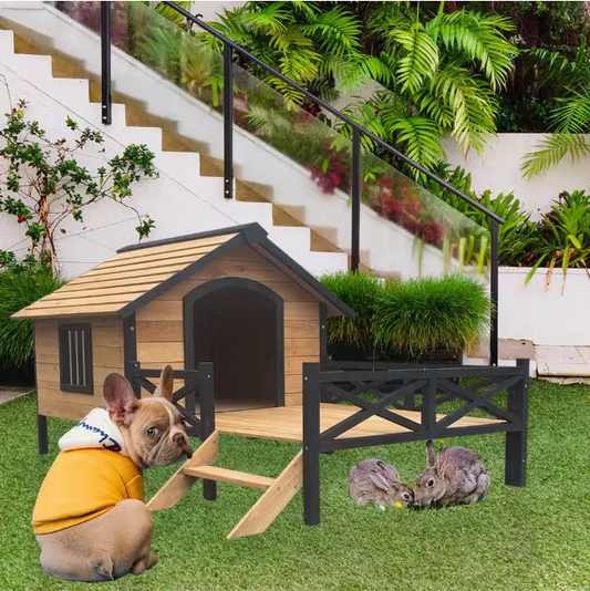 Outdoor Large House Style Wooden Dog Kennel with Porch